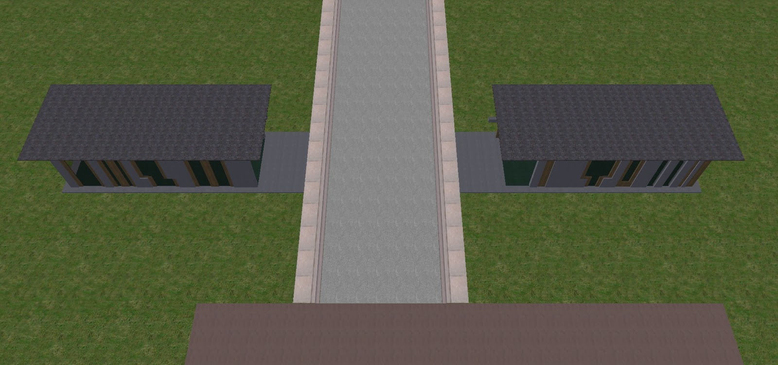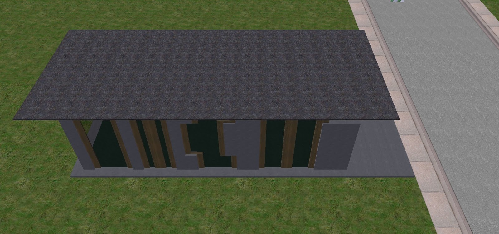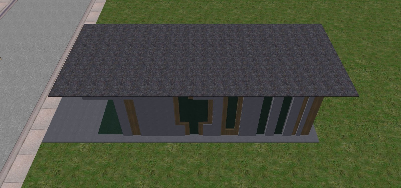 For my main building frame piece, I selected Unit04.rwx as it is a cube with some depth. For some thinner detailing that could make a believable 'wall' and window ceil, I chose wframe01.rwx. For further detailing, I chose p1rec0100g.rwx for some simple beams in my facade.
