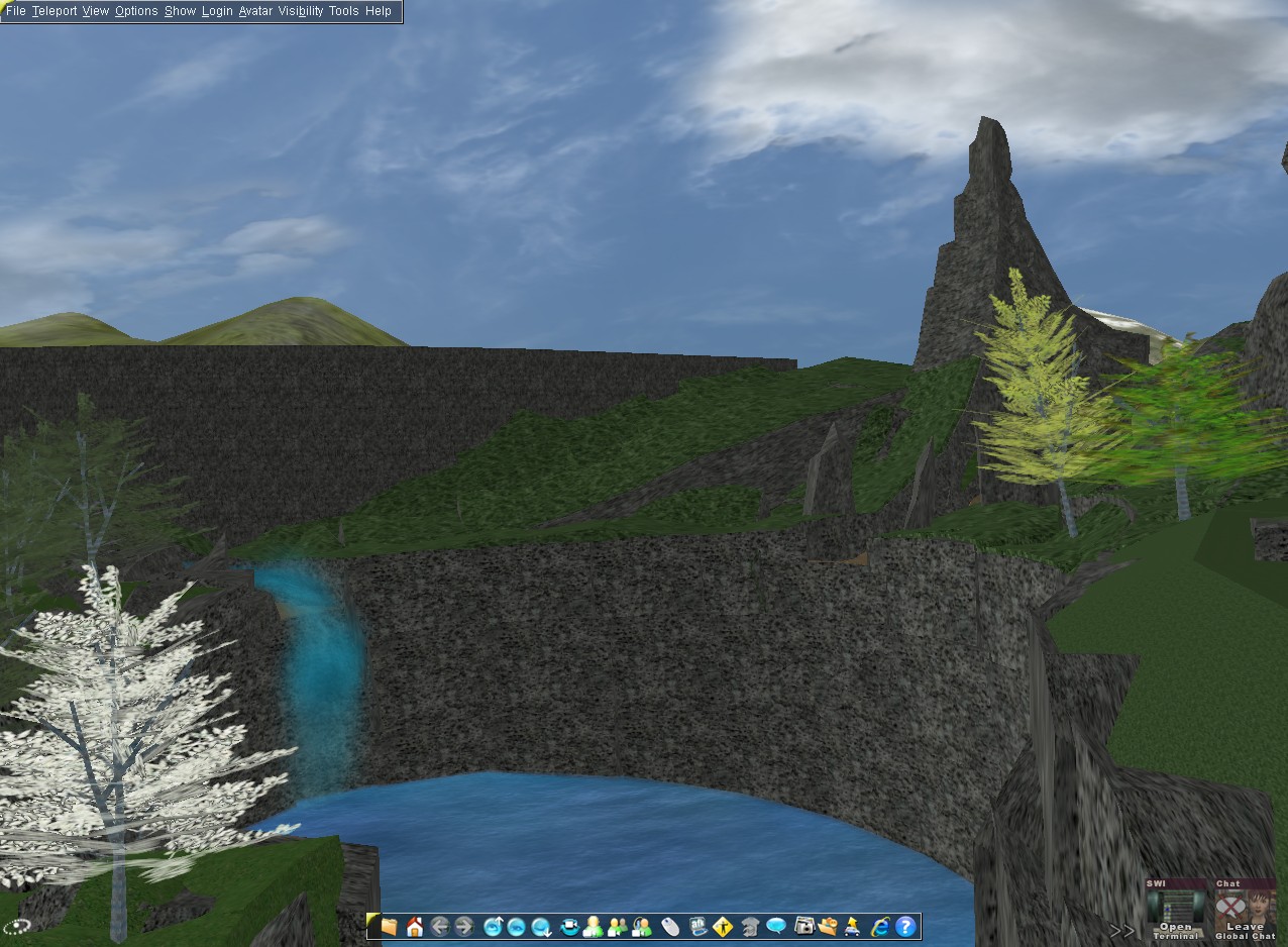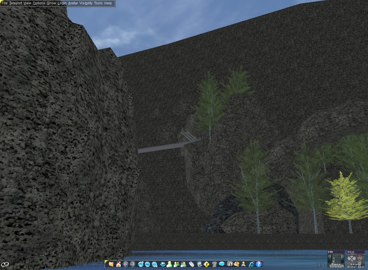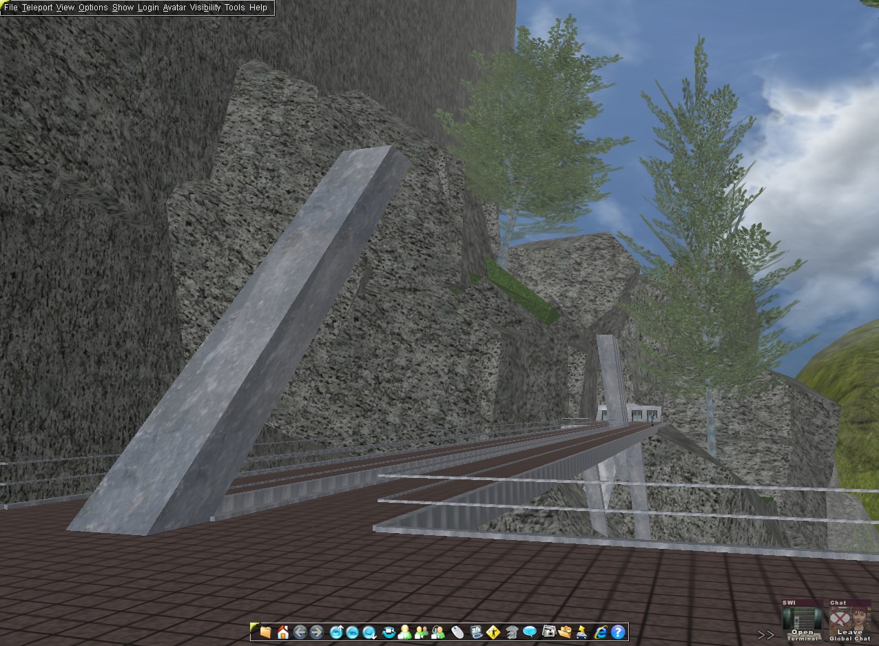 Note that Monolith Rise is immediately next to the sheared truss bridge that was featured in my last blog about Elkins Beach. You can find it in-world at "aw" 2680.24S 4071.27E 0.22a 314.
