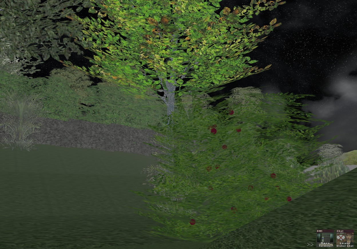 A very helpful usage of the color command is to add component pieces to existing objects for the purpose of making that particular instance the object unique. In the screenshot, the t_awhedge01.rwx object has been made unique by the addition of numerous red berries.