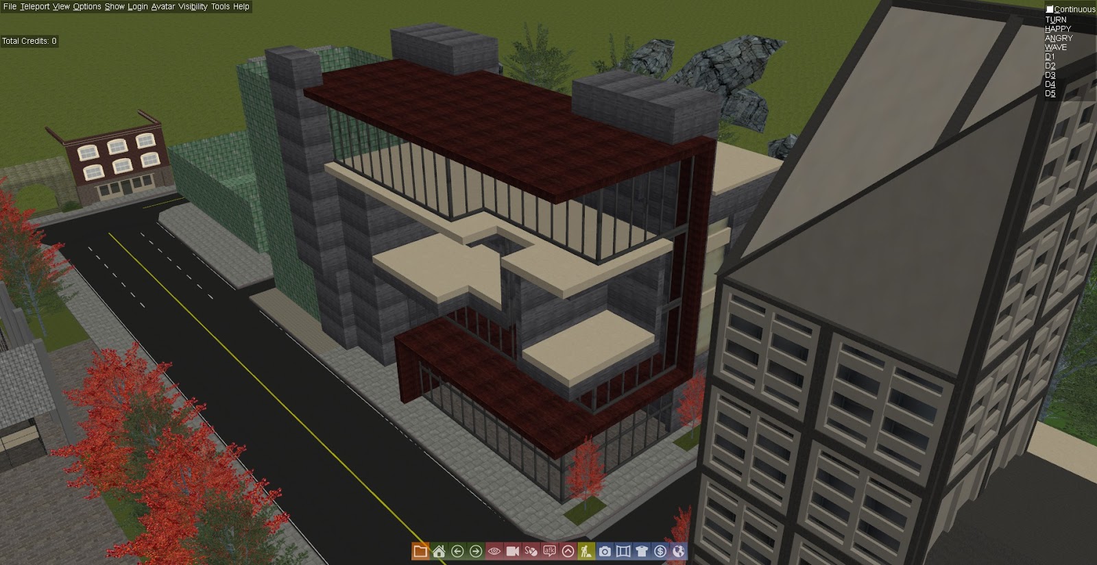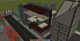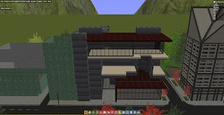 I'm particularly unhappy with the middle open space that you can see very well in the fourth screenshot. I wanted to make some apartment sorts of areas here, but it's really just coming out bulky and nasty. I'm also hitting a lot of cell space issues trying to accomodate it. That's probably going to be changed -- maybe extending the glass and just having three "floors".
