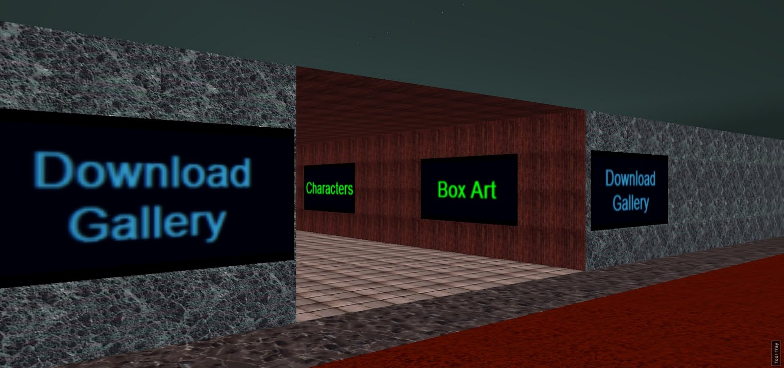 The Download Gallery.  Each sign in these rooms was clickable, and would take you to the associated subpage on the Sonic HQ site.  Each sub-section of the site had a room like this.