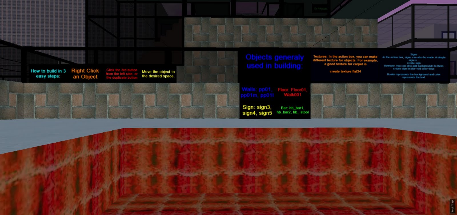 Enough people wanted to build to justify a home-brewed tutorial room.  Notice the lava floor again... not sure how I thought that fit at all, but can you blame a wee tot for that sort of thing? ;)
