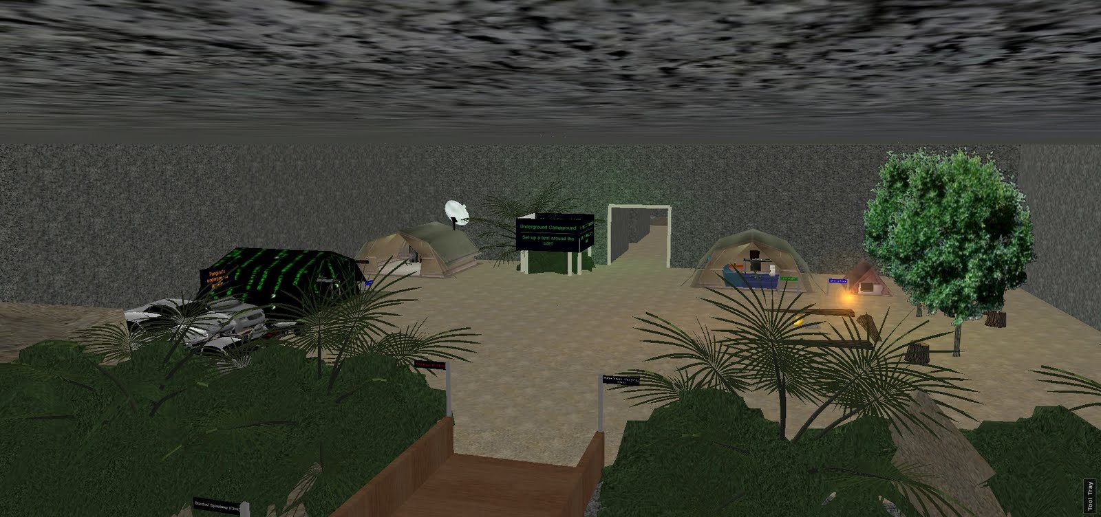 A secret tent-city in the cave system pictured above.  Several forumers worked together to build an intricate cave system with a number of secret rooms and passages.